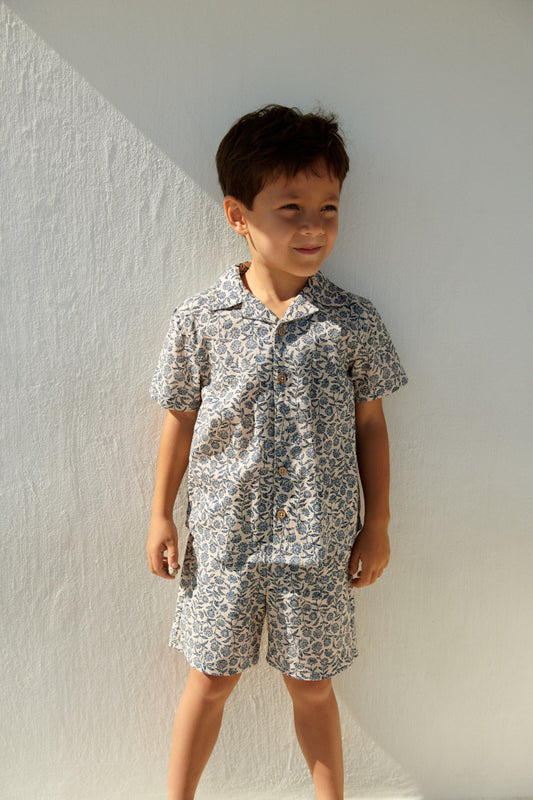 Wheat Anker kortærmet skjorte blue cornflowers